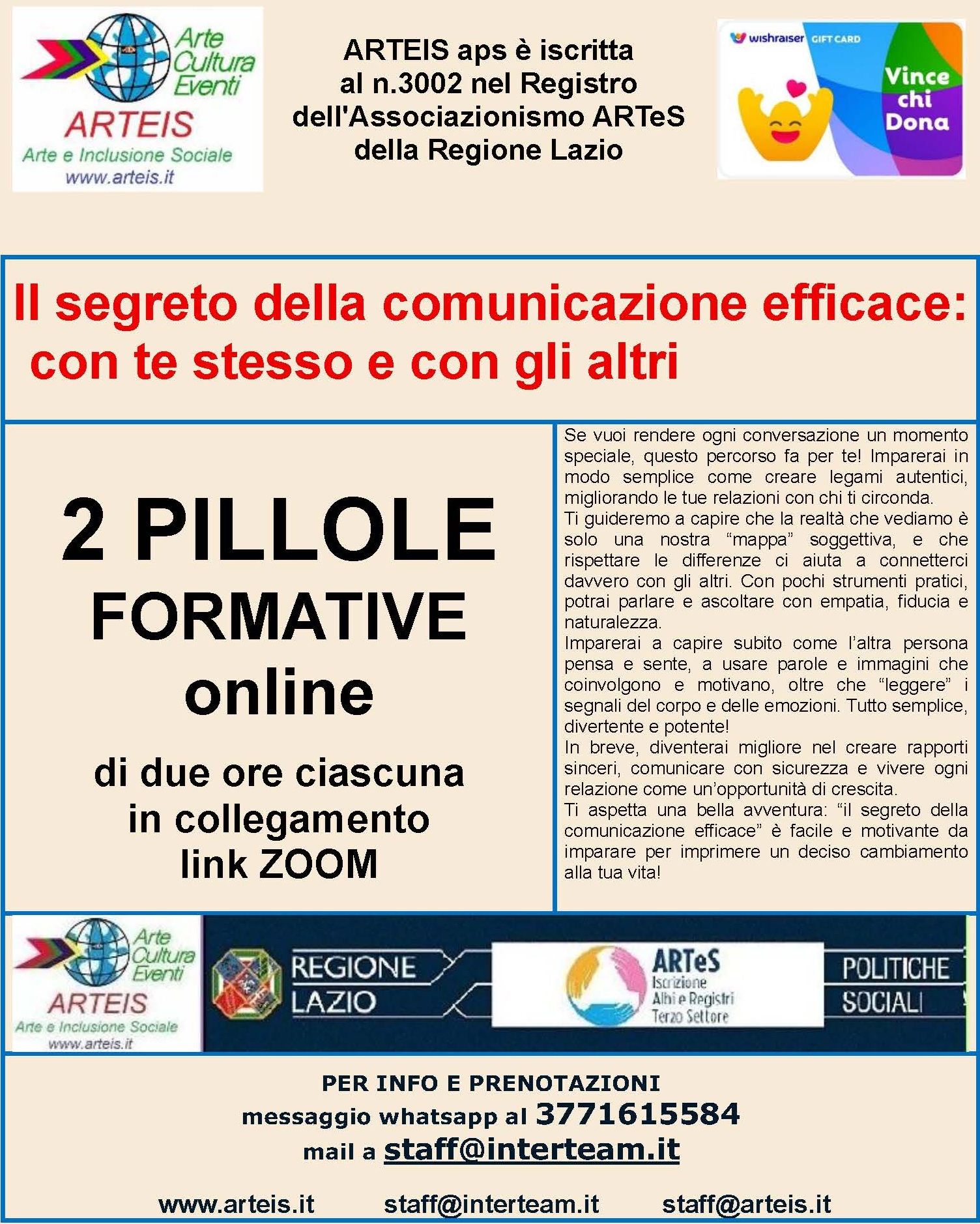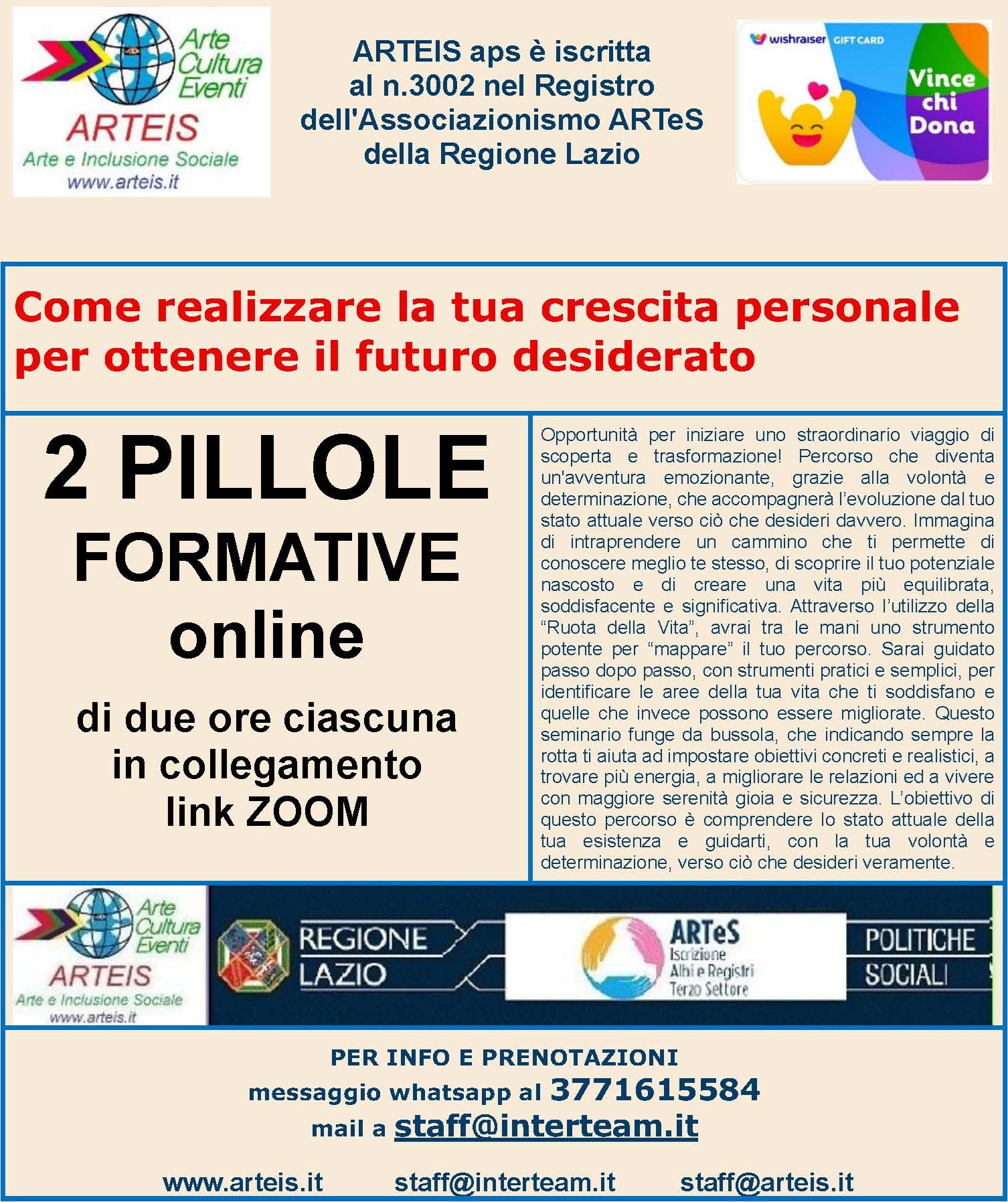per ottenere il futuro desiderato Per effettuare richiesta di informazioni sui prossimi seminari CLICCA QUI Avvertenza Nel caso di collegamento effettuato tramite webmail, non utilizzare il link ed inviare mail di richiesta delle informazioni a staff@interteam.it